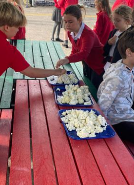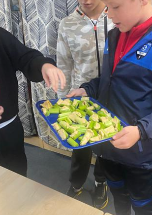 On Tasty Tuesdays, during September, the school council team distributed a variety of healthy snacks at breaktime for the children to try. We tasted cauliflower florets, celery with low fat hummus and wholegrain crackers with low fat soft cheese. It was great to see so many children trying a snack that they wouldn’t usually and even better to hear them say that they would try them again!